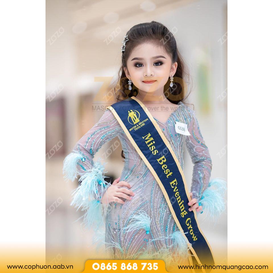 Đặc biệt, băng đeo chéo sự kiện sắc đẹp in ấn sắc nét giúp logo, slogan và tên thương hiệu hiện diện rõ ràng, góp phần quảng bá hình ảnh hiệu quả.