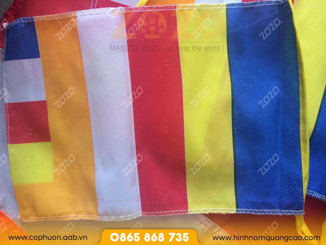 Thiết kế: giữ màu sắc truyền thống 5 màu Phật Giáo hoặc thêm biểu tượng, logo chùa.