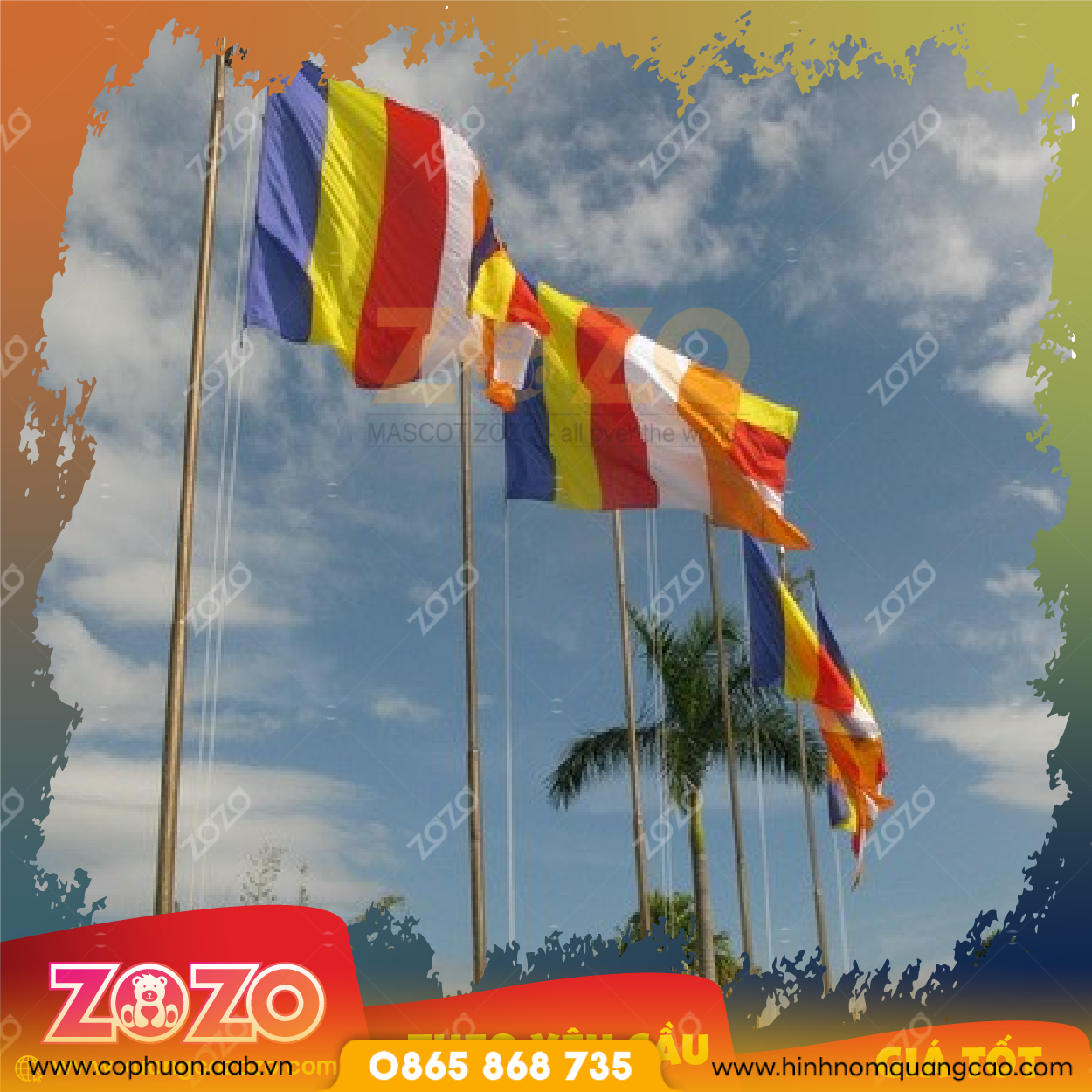Thiết kế: giữ màu sắc truyền thống 5 màu Phật Giáo hoặc thêm logo, tên chùa, biểu tượng lễ hội.